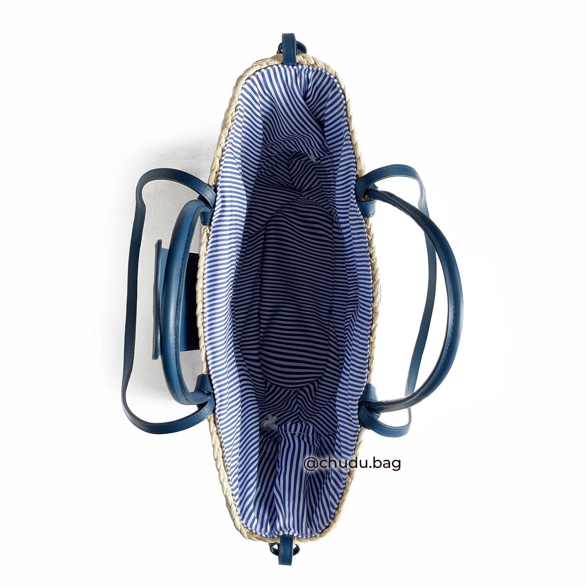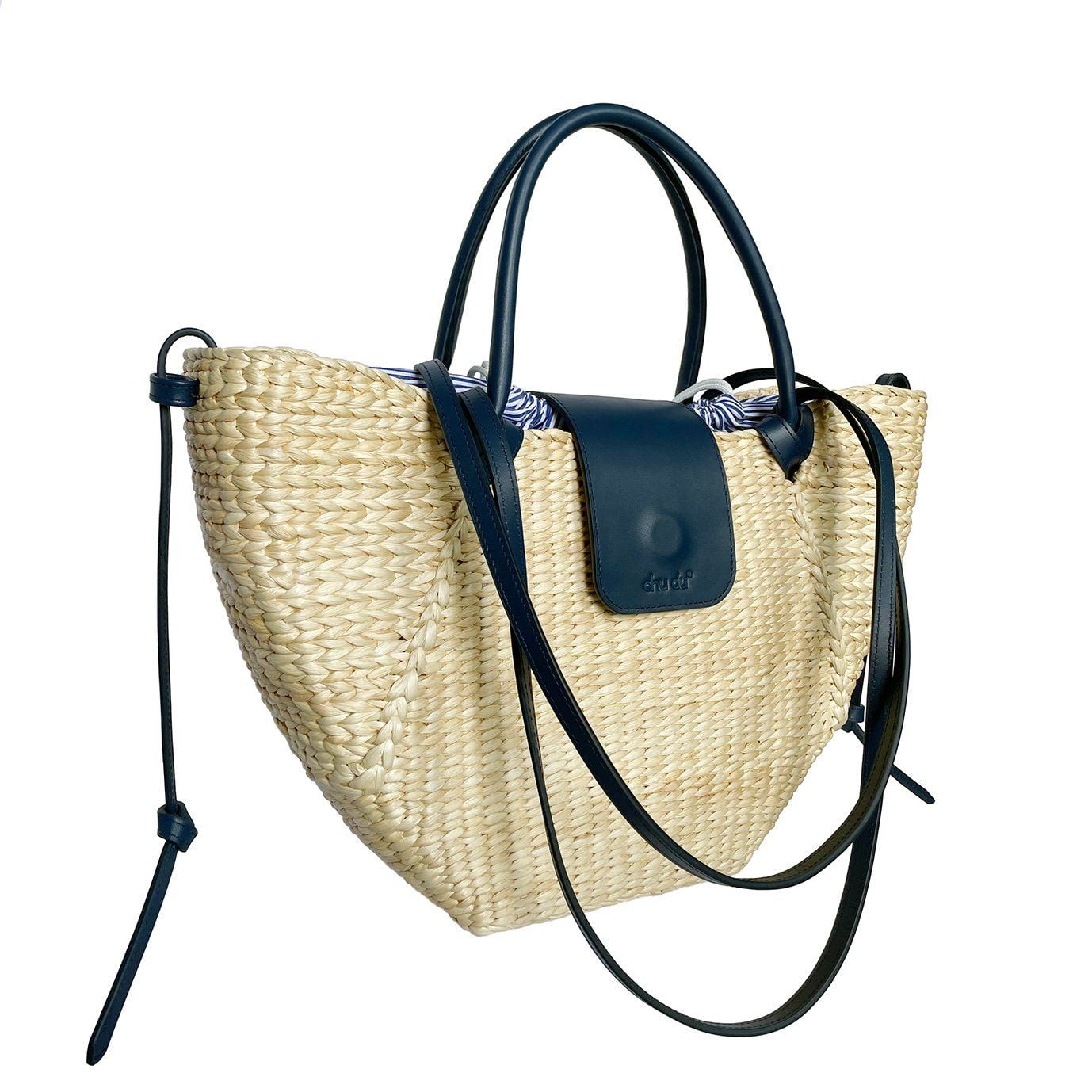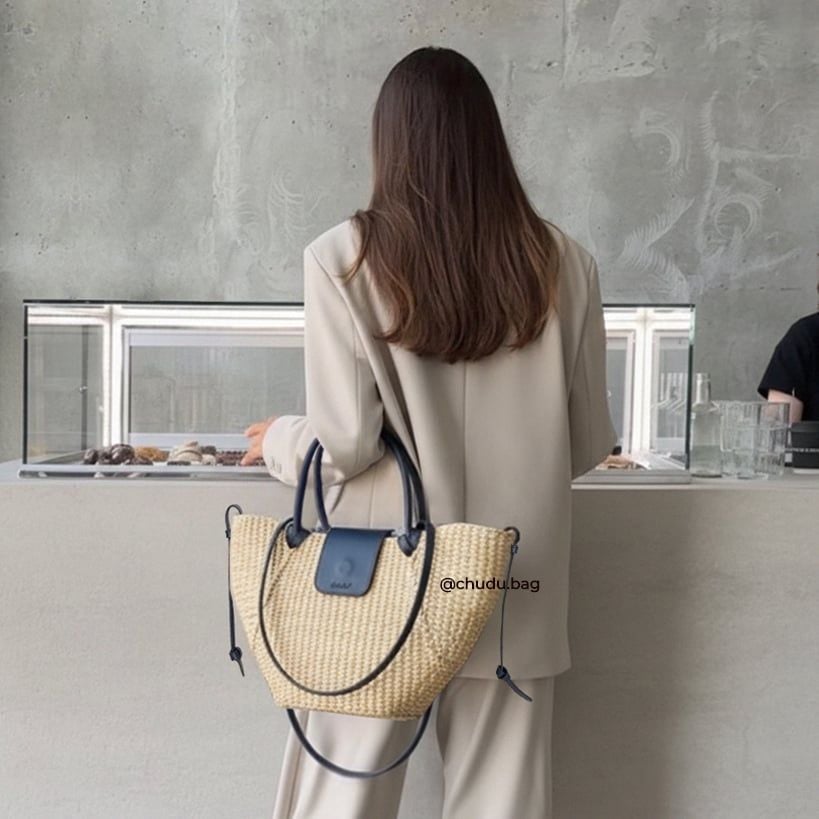 - Màu sắc: Thân màu tự nhiên, tay cầm & quai da màu xanh navy