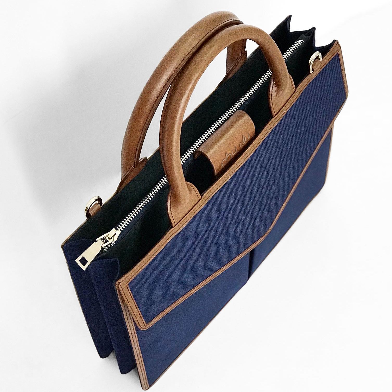 Túi Canvas Quai Da Thời Trang Nam Nữ Chu Du - Letter Bag 13 Inches - Màu Xanh Navy