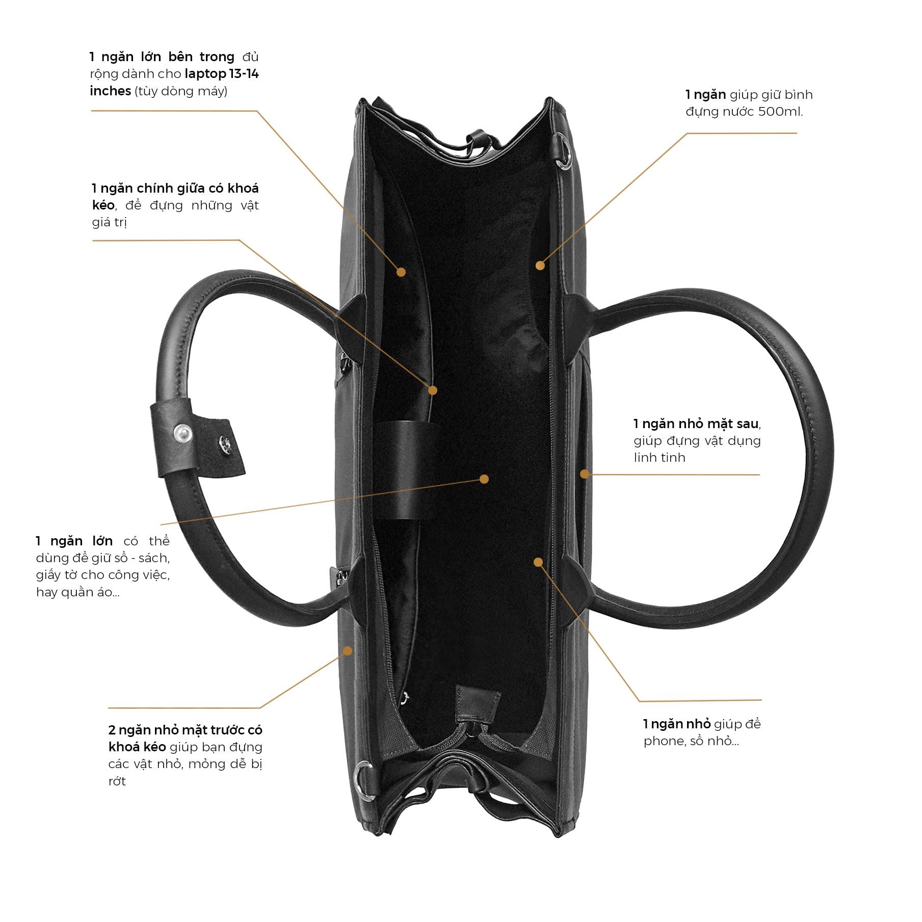 - Công năng đa dạng: với nhiều ngăn được chia thông minh cả trong lẫn ngoài, sẽ giúp bạn tổ chức mọi vật dụng một cách khoa học và thuận tiện. Bao gồm: